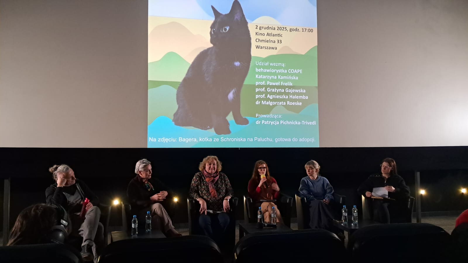Na zaproszenie Centrum Humanistyki Środowiskowej Uniwersytetu Warszawskiego, w warszawskim kinie Atlantic odbył się pokaz filmu Flow w reżyserii Gintsa Zilbalodisa praz dyskusja panelowa. W dyskusji, prowadzonej przez Patrycję Pichnicką-Trivedi wzięli udział behawiorystka COAPE Katarzyna Kamińska, prof. Paweł Frelik (Uniwersytet Warszawski), prof. Grażyna Gajewska (uniwersytet Adama Mickiewicza w Poznaniu), prof. Agnieszka Halemba (ZAND) oraz dr Małgorzata Roeske (UJ). Transkrypcja i publikacja debaty juz wkrótce!
